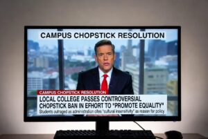 Welcome to the Great Chopstick Crisis, the latest meltdown in modern academia, where a few self-appointed cultural police decided that the real threat to society isn’t geopolitical instability, or skyrocketing tuition, or graduates who can’t operate a printer — but Becky from Sociology picking up her sushi with wooden sticks.